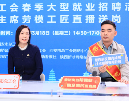3月18日下午,西安市总工会“春风送岗帮就业,助企惠民促发展”春季大型就业招聘暨工会主席劳模工匠直播送...